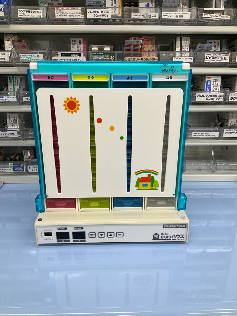 服薬支援機は、あらかじめセットしたお薬を決められた時間に取り出しやすくする機器です。